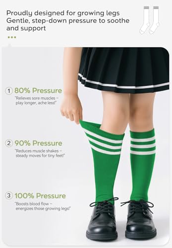 • MATERIAL:Kids knee high socks are made of 85%cotton, 15%spandex,it's comfortable and soft, also have good elasticity and durability. Boys girls soccer socks can keep feet warm, like leg warmers,so tube socks with stripes can be used as fall socks and winter socks as well.