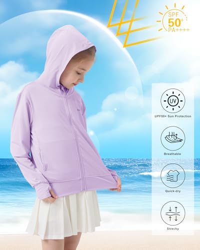• Quick-Dry & Breathable Fabric: Lightweight, moisture-wicking material and ventilation holes keep girls cool and comfy all day. Kids uv jacket is thin and easy to fold, making it convenient to carry