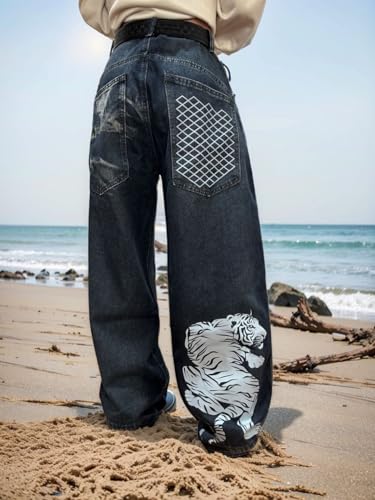 More information about Unisex Y2K Hip Hop Street Jeans with Tiger Print Gothic Baggy Jeans Vintage High Waist Denim Wide Leg Pants