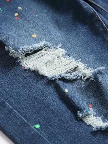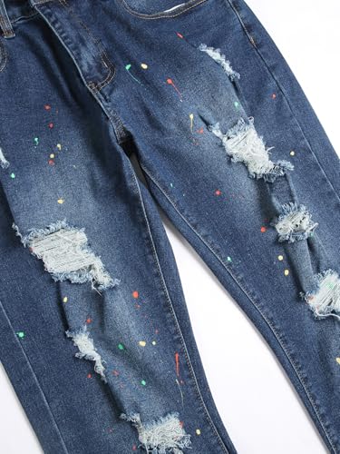 • STYLISH DISTRESSED DESIGN = Featuring trendy rips and fashionable paint splatters, these distressed jeans bring a contemporary edge to your casual outfits.