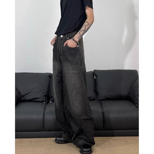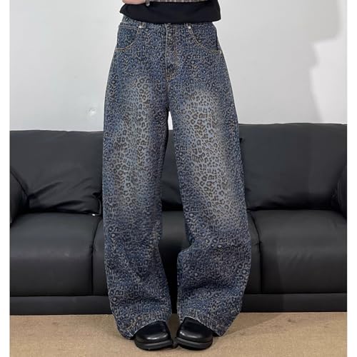 More information about Barrel Jeans Men Leopard Print Washed Baggy Jeans Men Low Waisted Vintage Parachute Wide Leg Barrel Denim Pants