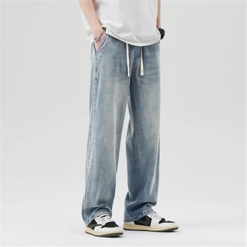 HOT ! Men Summer Thin Soft Lyocell Fabric Jeans Elastic Waist Loose Straight Breathe Denim Trousers