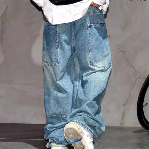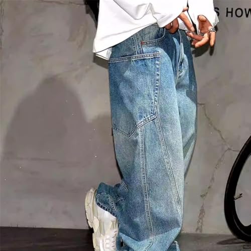More information about Men’S Vintage Streetwear Loose Skateboard Denim Cargo Pants Slim Fit Full Length Button Fly Distressed Casual Trousers