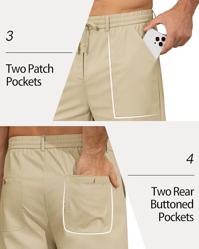 • 4 External Pockets: These men’s cotton-linen pants with two patch pockets and two rear buttoned pockets, which is roomy, secure and easy access for essentials. The buttons are fashionable and practical with coconut buttons.