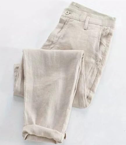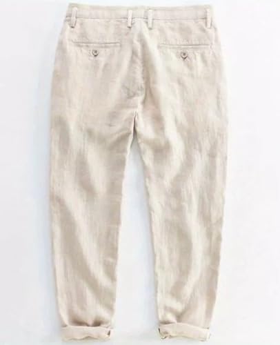 Men's Fit Pants Linen Casual Business Slim Pants Lightweight with Pockets 6