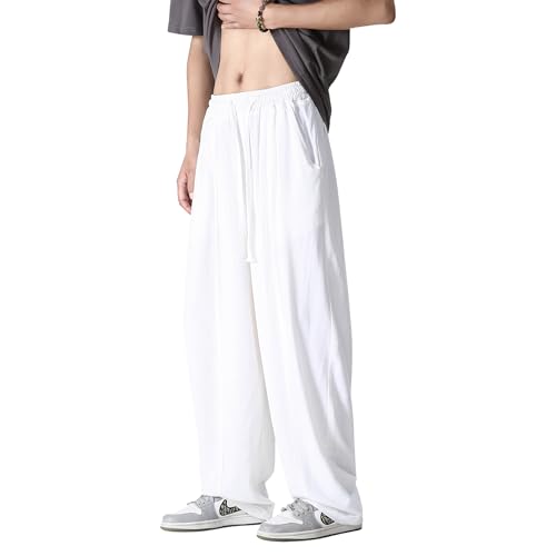 HOT ! Tripleberly Linen Pants Men Casual Pants for Men Summer Beach Loose Fit Elastic Drawstring Waist Straight Legs Joggers Yoga