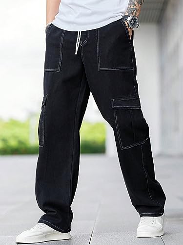 More information about WDIRARA Men's Flap Pockets Cargo Drawstring High Waisted Casual Straight Leg Pants