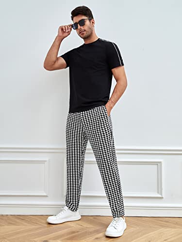 WDIRARA Men's Houndstooth Print Drawstring Tie Front Joggers Tapered Casual Long Pants 1