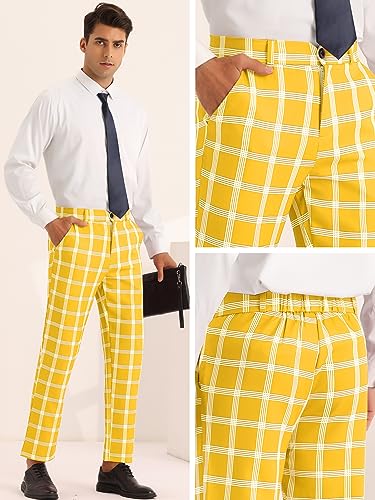 • 【SIMPLE DESIGN】Plaid patterned, zipper button closure, tapered leg, classic plaid suit pants.