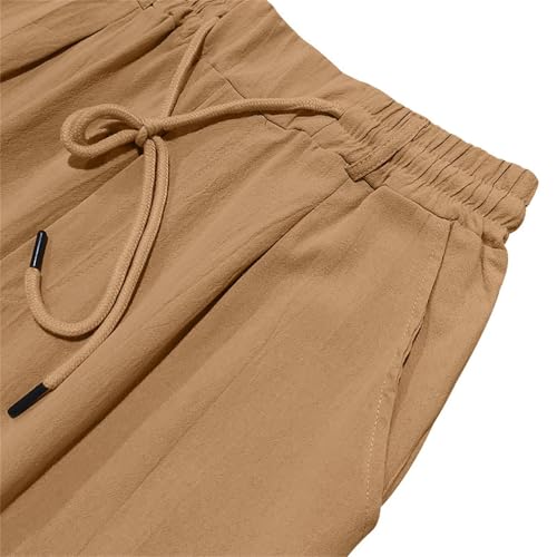 Casual Lounge Daily Pants for Men Cotton Linen Elastic Waist Hawaii Beach Trousers Wide Leg Drawstring Traveling Pant 6