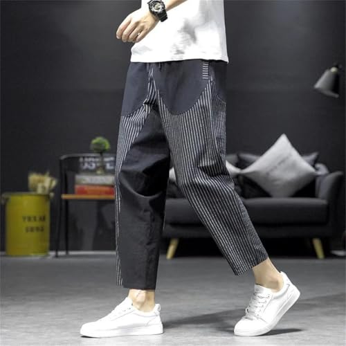 HOT ! Men Thin Cotton Linen Stripe Nine-Piece Pants Loose Lantern Harem Loose Trousers
