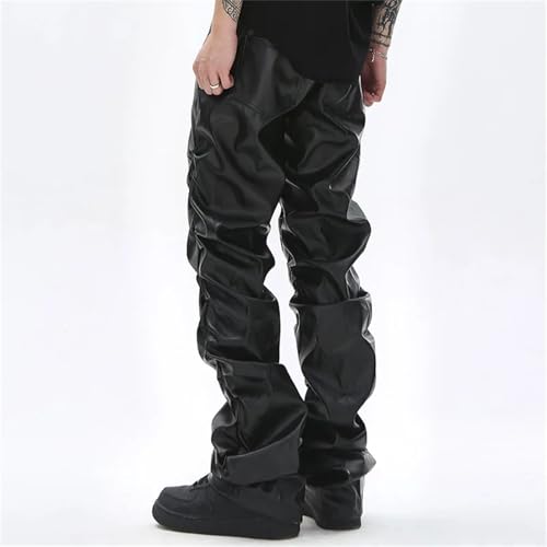 More information about Men's Hip Hop Pleated Pu Leather Pants Harajuku Retro Streetwear Loose Fit Ruched Casual Straight Leg Trousers