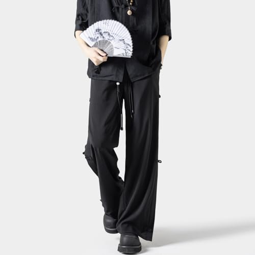 More information about Seidarise Men's Chinese - Style Black Wide Leg Pants Knot Details Patterned Side Slits Ideal for Cultural Casual Looks