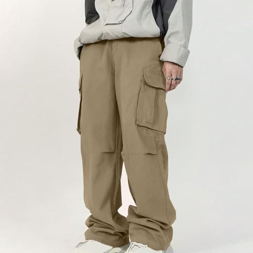 More information about Men Baggy Cargo Pants Wide Casual Parachute Pants Jogger Elastic Waist Drawstring Hiking Outdoor Trousers with Pocket