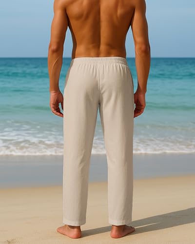 BUXKR Men's Linen Pants Beach Casual Cotton Summer Lightweight Elastic Waist Drawstring with Deep Pockets 7