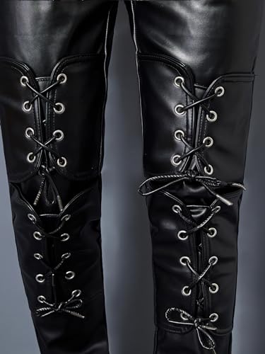 Men`s Rock Steampunk Gothic Lace Up Cosplay Party PU Leather Pants 6