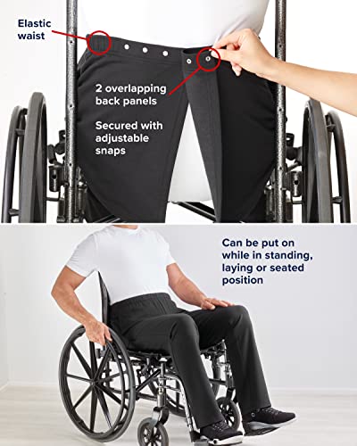 • TOTAL COVERAGE: Two overlapping back flap panels offer convenience and coverage for this wheelchair pant. These are the breakaway pants men love because they feature two large pockets and a multi-needle waistband. This elderly clothing for men is able to store your keys, wallet, phone, and other small personal items.