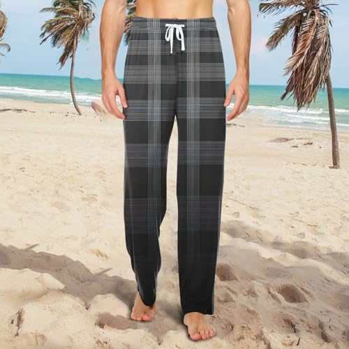 HOT ! Mens Plaid Cotton Pajama Lounge Pants Knit with Side Pockets and Adjustable Drawstring Comfy Pajama Pants