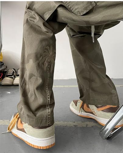• Features: Camo pants men with elastic drawstring waist, classic 5 pockets and 2 flap pockets, loose fit, unique coco net tree printed on the back, streetwear style hip hop pants for men