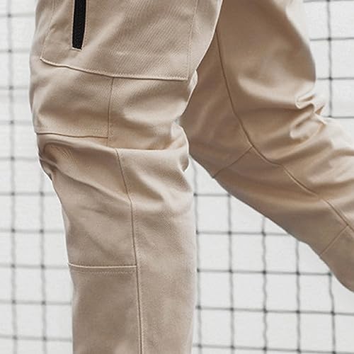 JEsilunmaMY Men's Side Pockets Slim Joggers Pants Solid Color Casual Cargo Pants Hiking Outdoor Cotton Track Trousers 5