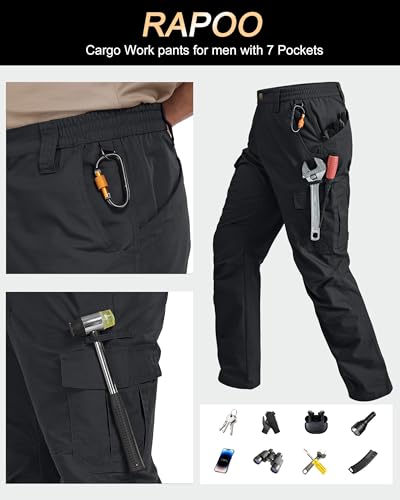 • 【Ripstop Fabric】--The Rapoo work pants are crafted from ripstop fabric that has undergone an excellent water-repellent treatment, keeping you dry all day long. They are designed to be breathable, scratch-resistant, durable, water-resistant, comfortable, flexible, and resistant to wrinkles and fading.