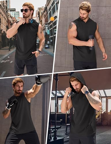 • Comfy & Breathable: Men's hooded tank tops made of 4-way stretch cotton blend fabric, soft, breathable, flexible, lightweight, and moisture-wicking. It helps you stay comfortable and dry all day, reduces the sticky feeling.