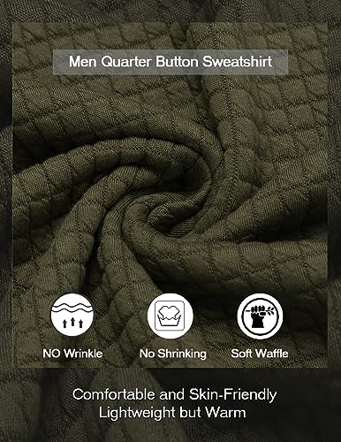 COOFANDY Mens Quarter Pullover Quilted Sweatshirt Casual Knit Long Sleeve Mock Neck Sweater Waffle Collared Pullover 4
