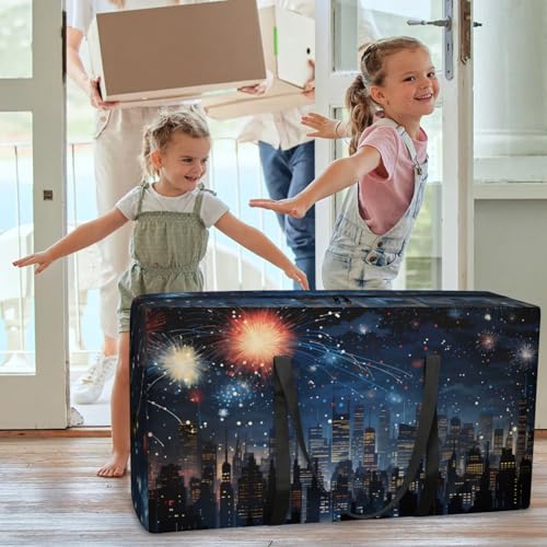 HOT ! Night City Extra Large Moving Bags Heavy Duty Storage Bags Bright City Cloth Wrap Around Handles Double Zipper Reusable Convenient Foldable Storage Tote for Travel Camping Space Save