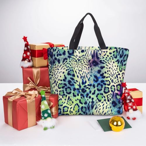 HOT ! Green Leopard Print Tote Bag,Multi-functional Reusable,Lightweight Crossbody,Work,Travel,Everyday Use