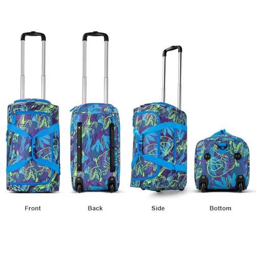 Choco Mocha Boys Dinosaur Suitcase with Wheels Kids Blue Rolling Duffle Bag for Camping Teen Boys Toddler Luggage Bag for Travel, 22inch 2