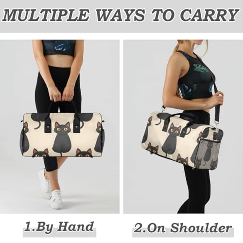 Cat Travel Duffle Bag for Women Men Foldable Waterproof Weekender Bag Carry on Tote for Overnight Sports Gym Black Cat 1
