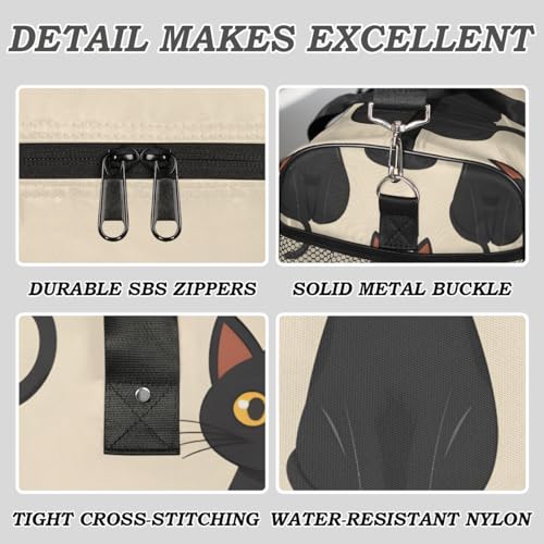 Cat Travel Duffle Bag for Women Men Foldable Waterproof Weekender Bag Carry on Tote for Overnight Sports Gym Black Cat 4