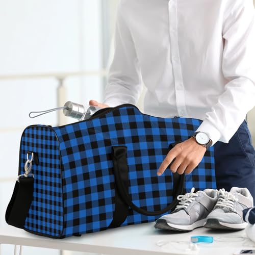 Blue Buffalo Plaid Travel Duffle Bag, Weekender Bags for Women Men, Carry on Overnight Bag Waterproof Gym Bags, Hospital Bag for Labor and Delivery 6