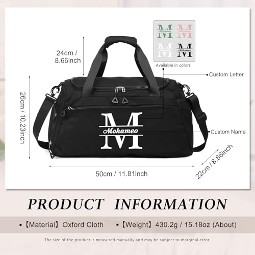 HOT ! Personalized Travel Duffel Bag for Men: Multi-compartment with Shoulder Strap and Name - Gift for Birthday Weekend Holiday - for Friends Sport Traveler Lover (Black)