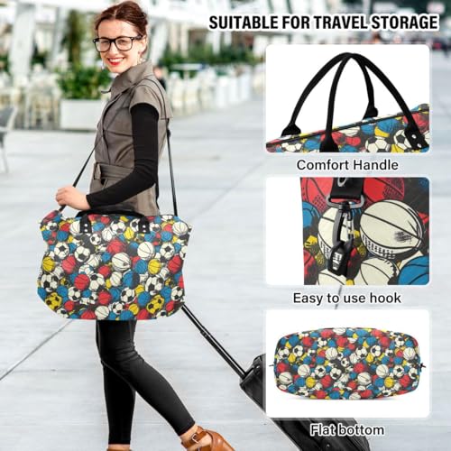 Multicolor Sport Ball Basketball Travel Duffle Bag Gym Bag Weekender Bags with Toiletry Bag Travel Trip Tote Bag 6