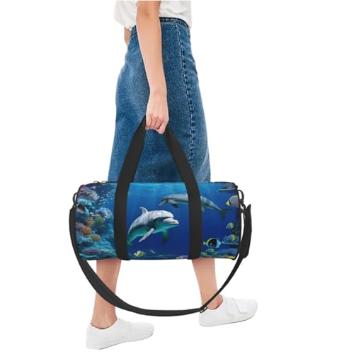 Underwater world fish dolphi Duffle Bag for Men Women - Carry on Overnight Bag Travel Duffel Tote Bags Yoga Gym Bags Waterproof Weekender Bag Large Luggage Bag with Adjustable Strap 6