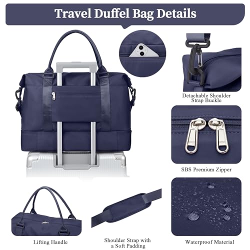 HOT ! SYCNB Weekender Bags for Women, Personal Item Travel Bag with Shoes Compartment, Overnight Travel Duffel Bag with Wet Pocket & Trolley Sleeve,Gym Bag,Navy Blue