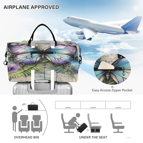 HOT ! Weekender Bags Travel Duffel Gym Bag Retro Butterfly Carry on Overnight Tote Bag with Toiletry Bag for Airplane Travel Trip Gym Yoga