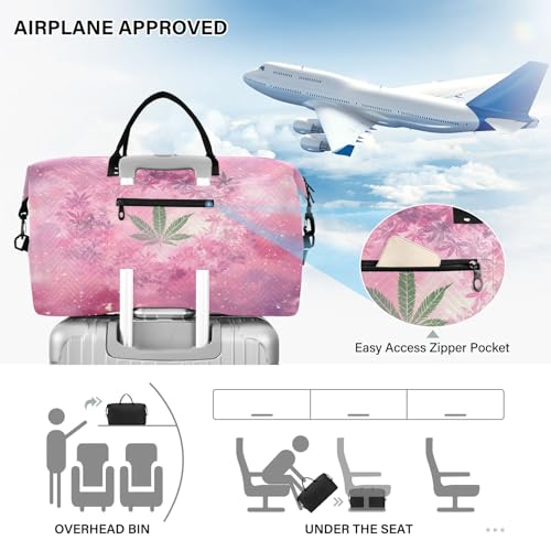 HOT ! Weekender Bags Travel Duffel Gym Bag Cannabis Leaves Nebula Carry on Overnight Tote Bag with Toiletry Bag for Airplane Travel Trip Gym Yoga