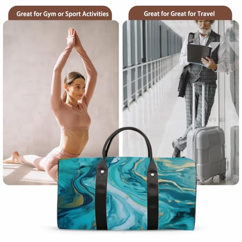 More information about Abstract Teal And Blue Marble Print Travel Duffel Bag Sports Tote Gym Bag Waterproof Tear-Resistant Carry On Overnight Bag Foldable Weekender Bag for Gym Travel Getaway Beach Sports