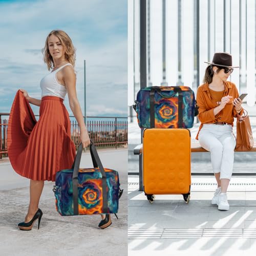 Vintage Tie Dye Travel Duffel Bag for Men Women Colorful Spiral Sports Gym Bag Waterproof Weekender Overnight Bags Foldable Carry on Backpack for Swim Yoga Fitness Workout 1