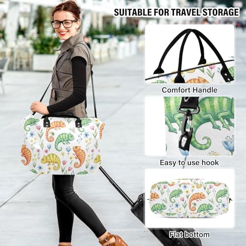 Colorful Chameleon Flowers Travel Duffel Bag for Men Women with Makeup Bag Weekend Overnight Carry On Bags for Airline Under Seat Travel 7