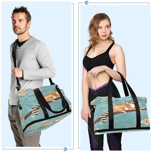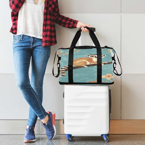 HOT ! Ringtail Lemur Flowers Teal Travel Duffel Bag for Women Men Gym Bag with Shoe Compartment Wet Pocket Carry On Weekender Overnight Bags for Travel Weekend Getaway