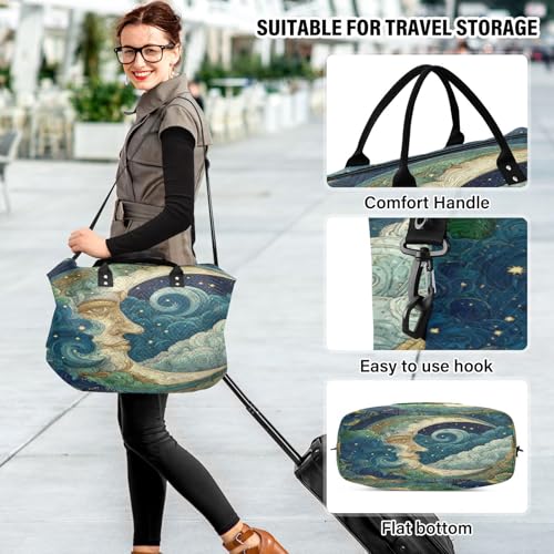 Crescent Moon Face Travel Duffel Bag for Men Women with Makeup Bag Weekend Overnight Carry On Bags for Workout Gym Travelin 7