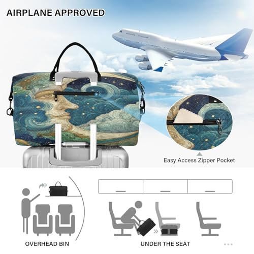 Crescent Moon Face Travel Duffel Bag for Men Women with Makeup Bag Weekend Overnight Carry On Bags for Workout Gym Travelin 6
