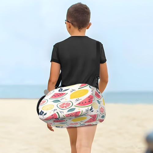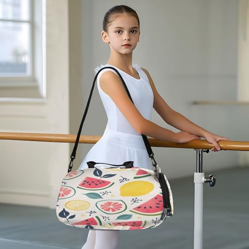 Lemon Leaves Beige Kids Travel Duffel Bag for Boys Girls Overnight Weekend Tote Bag with Shoes Compartment for Gym Sports Dance 5