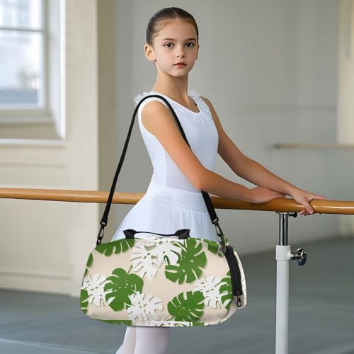 Green Leaf Palm Kids Travel Duffel Bag for Boys Girls Overnight Weekend Tote Bag with Shoes Compartment for Gym Sports Dance 6