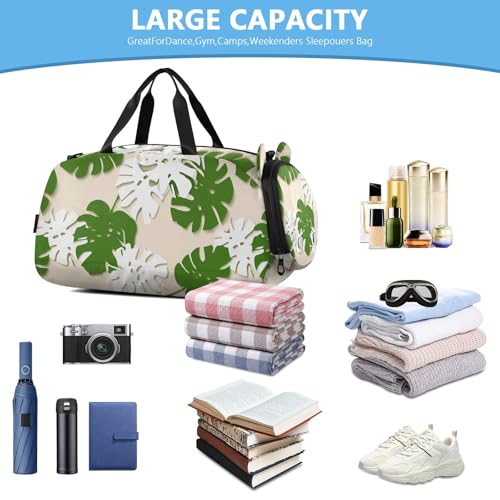HOT ! Green Leaf Palm Kids Travel Duffel Bag for Boys Girls Overnight Weekend Tote Bag with Shoes Compartment for Gym Sports Dance