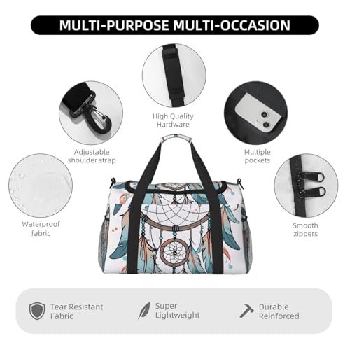 Dream Catcher Print Travel Duffle Bag - Foldable Personal Item Travel Bag for Women & Men,Carry-On Convertible Crossbody Tote Bags with Adjustable Shoulder Strap & Pockets 13x10.2x19.7 in 1