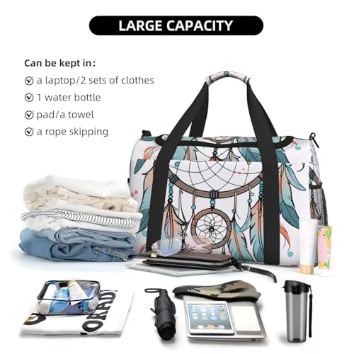 Dream Catcher Print Travel Duffle Bag - Foldable Personal Item Travel Bag for Women & Men,Carry-On Convertible Crossbody Tote Bags with Adjustable Shoulder Strap & Pockets 13x10.2x19.7 in 7